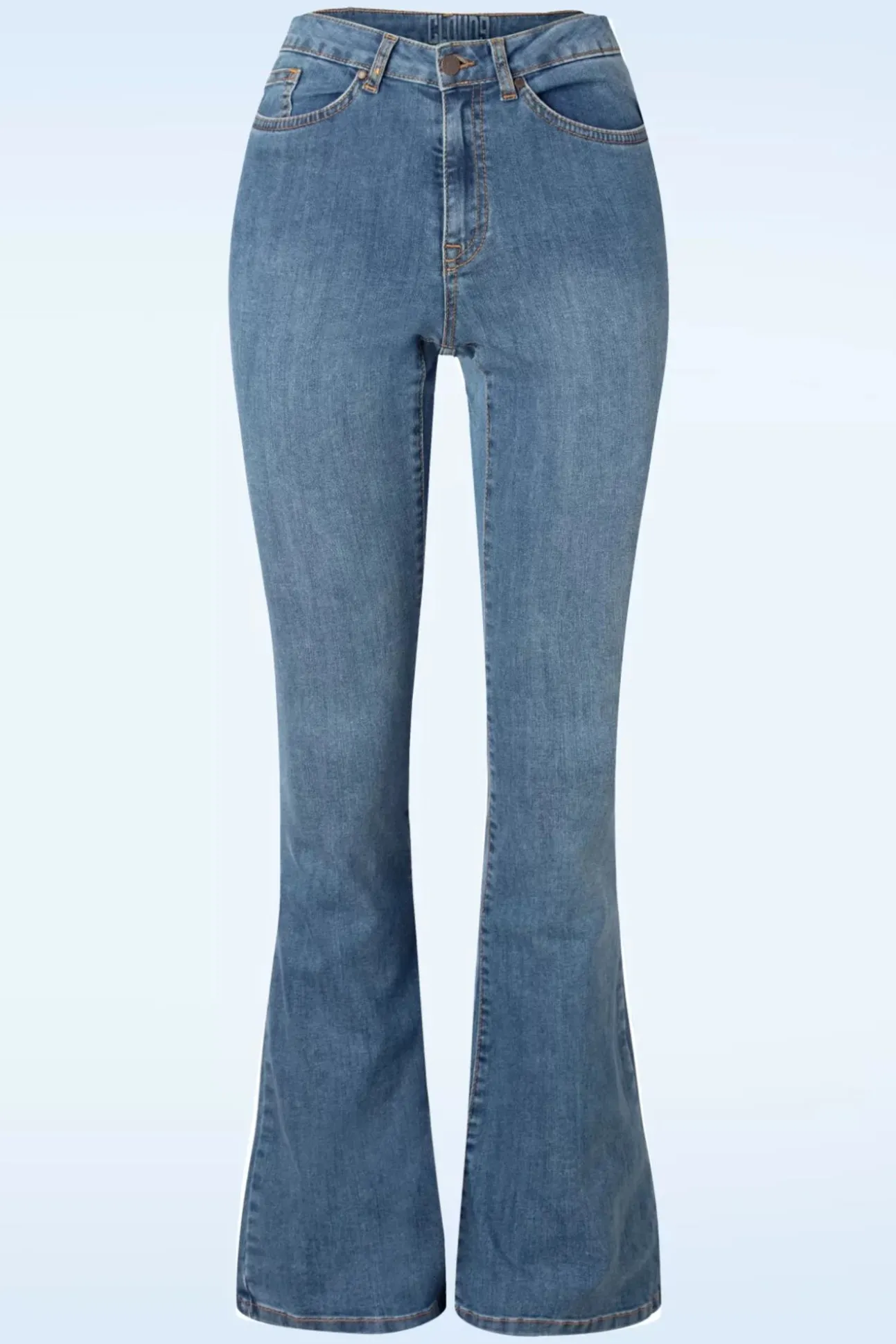 Deze Dora Flared Jeans Is Zó Comfy, Je Wilt Haar Iedere Dag Wel Dragen! Geen Wonder Dat De Flared Broeken Een Grote Trend Waren In De Seventies En Nu Een Fantastische Comeback Hebben Gemaakt! De Wijd Uitlopende Pijpen Zijn Niet Alleen Speels Maar Ook Nog Eens Super Flatterend. Uitgevoerd In Een Stevige Maar Stretchy, Licht Denimblauwe Biologische Katoenmix Voor Een Heerlijk Draagcomfort. ”How I Like My Trousers? Comfy, Fabulous And… Flared! ;-)”