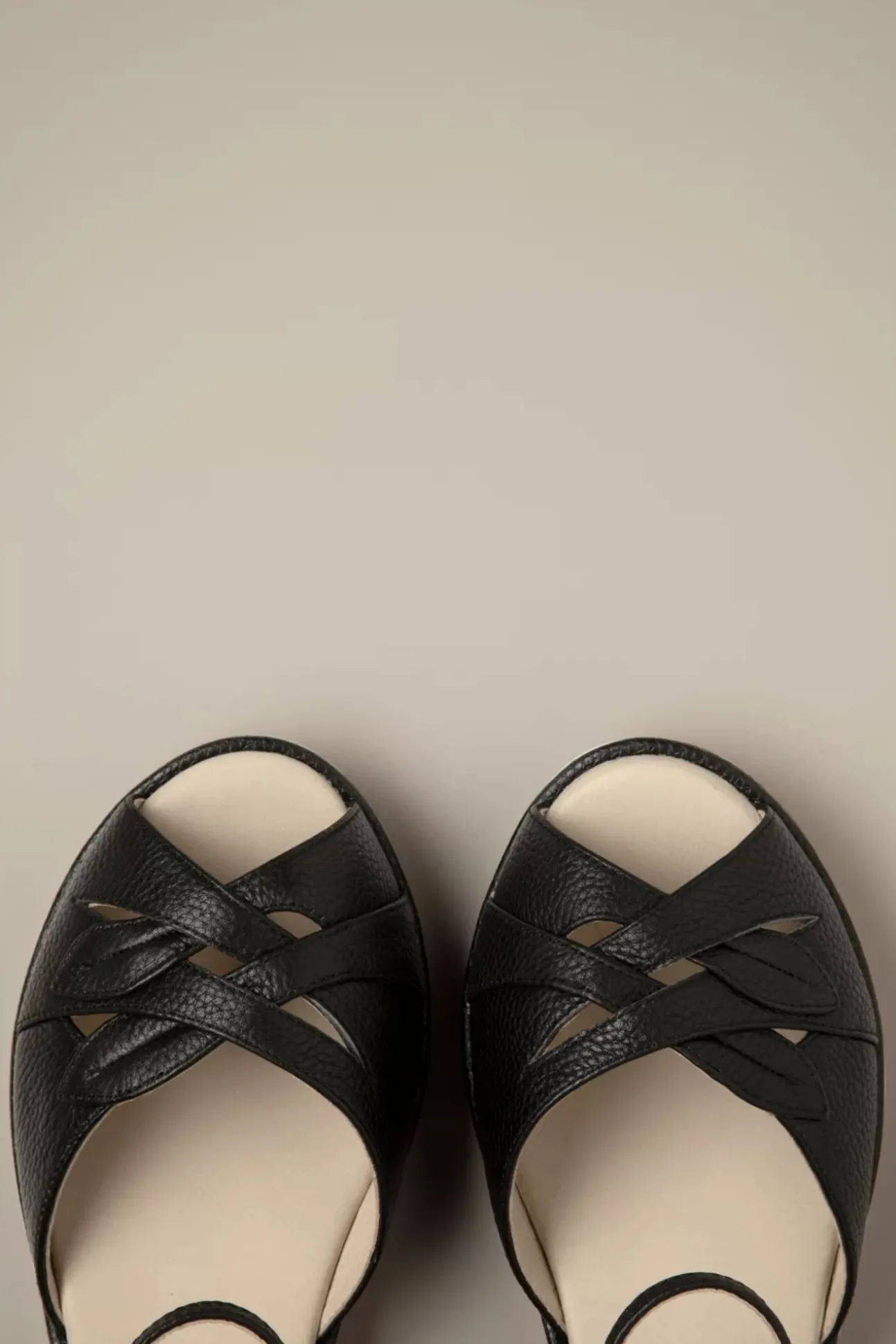 Vernoemd Naar Het Op 2 Na Grootste Eiland Van Italië… Deze Elba Sandalen Zijn De Ideale Schoentjes Voor Warme, Broeierige Dagen! Uitgevoerd In High Quality, Zwart Structuur Leder Met Sierlijke Uitsneden En Een Aangenaam Plateau. Bellissima!