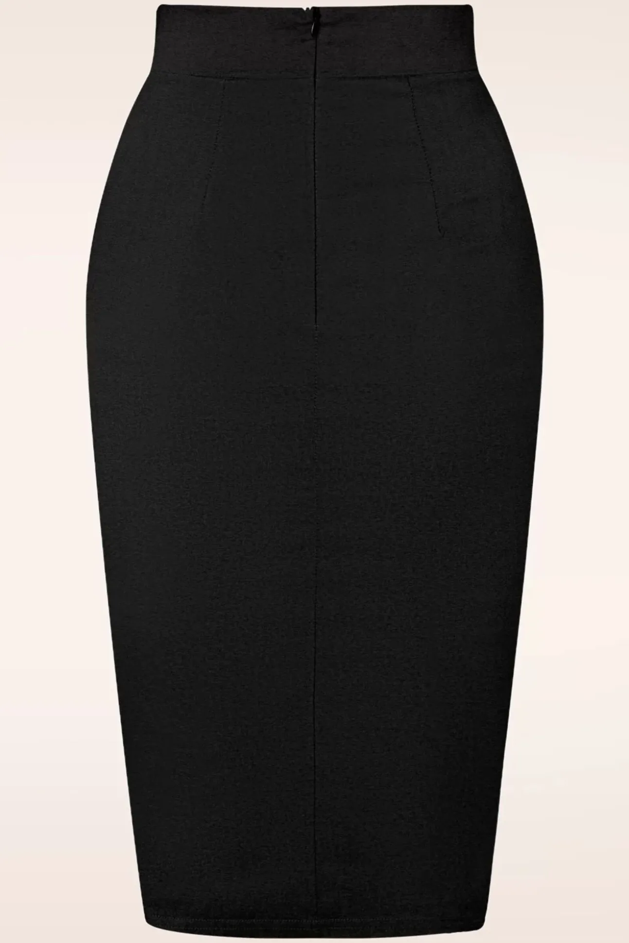 De 50S Eleonora Pencil Skirt In Black Is Een Klassieke Veelzijdige Rok! Deze Rok Wordt Hoog In De Taille Gedragen En Is Uitgevoerd In Een Stretchy, Zwarte Bengaline Stof Die Je Rondingen Perfect Benadrukt. Eindeloos Combineren Verzekerd Met Deze Tijdloze Topper!
