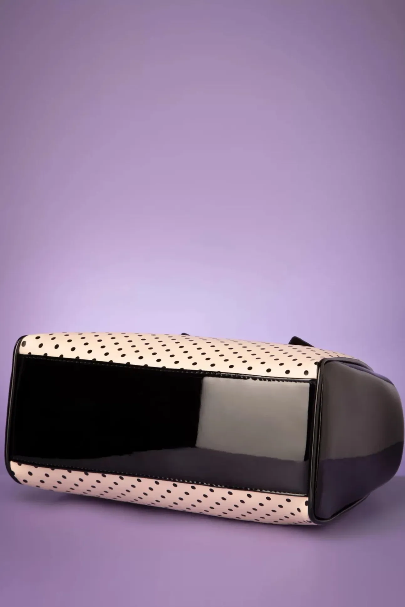 Ook Banned Heeft Dit Seizoen Weer Je ‘Bag’ Met Deze 50S Frances Polka Star Bag In Black And Blush! Deze Beauty Heeft Een Opvallende Zilverkleurige Metalen Knipsluiting En Is Uitgevoerd In Een Combinatie Van Zwart ‘Faux’ Lakleder En Poederroze ‘Faux’ Leder Afgewerkt Met Een Schattige Strik En Een Print Van Zwarte Polkadots. Ze Wordt Bovendien Geleverd Met Een Langer, Verstelbaar Hengsel Zodat Je Haar Ook Speels Om Je Schouder Kunt Dragen. En Al Je Essentials Passen Er Met Gemak In, Dus Volg Je (Vintage) Modehartje En Bestel Haar Nu!