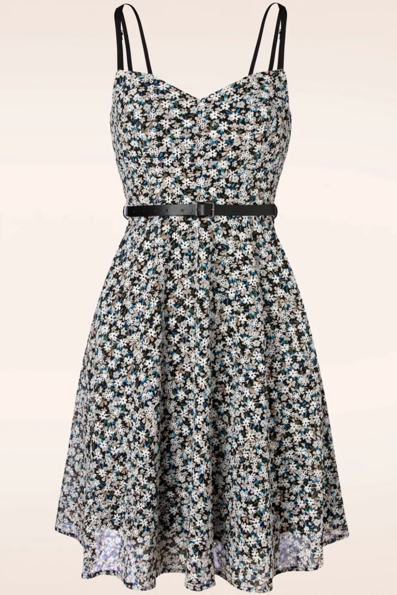 Deze Floral Embroidered Swing Dress In Black Is Niet Zomaar Een Jurkje… Haar Sweetheart Halslijn, De Speelse Spaghettibandjes Met 3 Straps, Het Afneembare Riempje In De Taille En Zwierige Swing Rok Maken Haar Een Echt Vintage Pareltje. Maar Dat Is Nog Niet Alles, Deze Dress Is Namelijk Uitgevoerd In Een Soepel Vallende En Luchtige, Chiffon Stof (Stretcht Niet) Met Witte, Geborduurde Bloemetjes, Een Kleurrijke Bloemenprint En Is Afgewerkt Met Elastisch Smock Aan De Achterzijde Voor Een Heerlijk Draagcomfort. ‘summer Is Just Around The Corner’, Dus Zorg Ervoor Dat Je Deze Beauty Op Tijd In Jouw Kast Hebt Hangen!