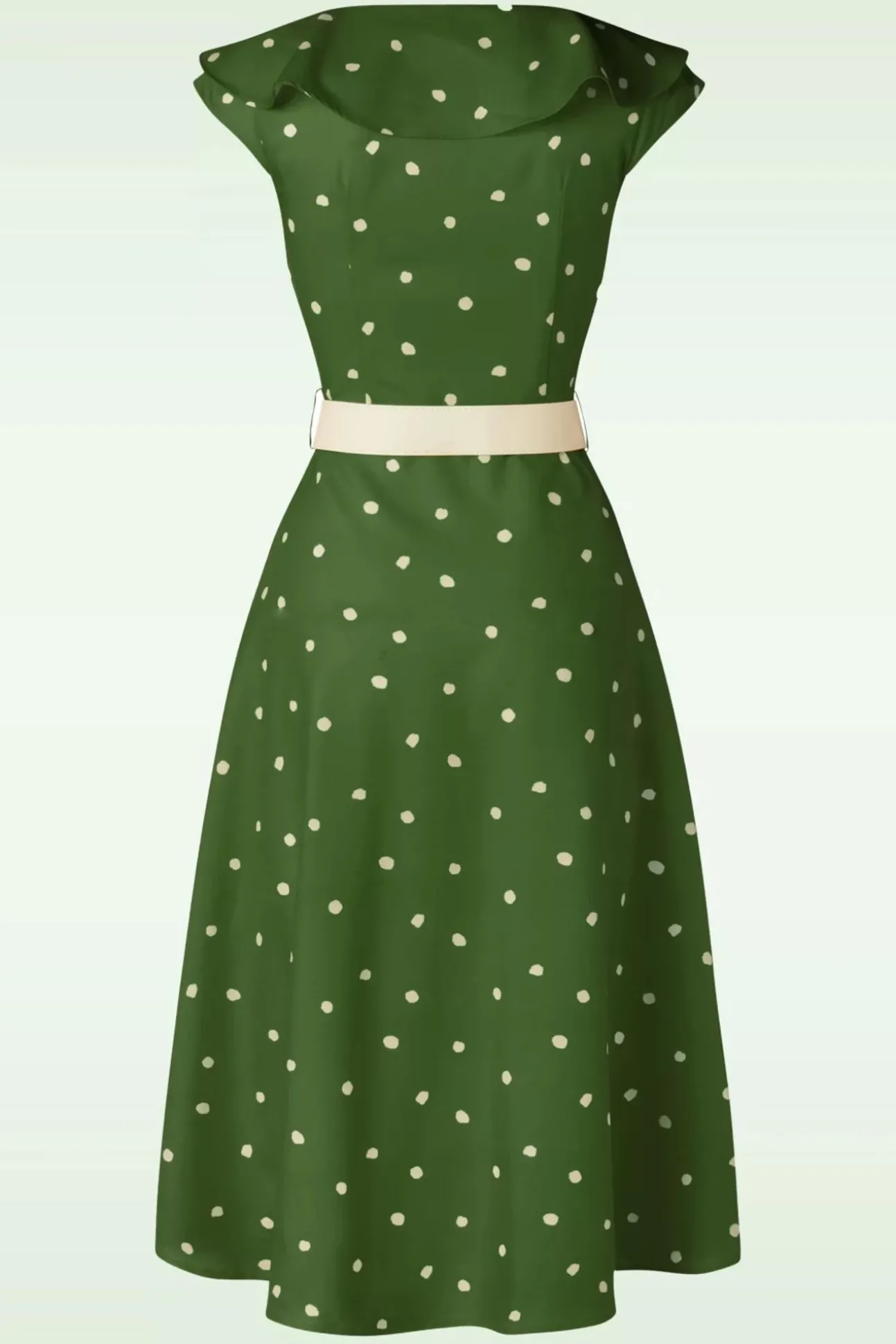 ”Cute, Cuter, Cutest!” Deze Dotty Wide Collar Midi Dress In Green Heeft Alles Wat Je Zoekt In Een Jurk! De Top Is Voorzien Van Korte Kapmouwtjes, Een Brede, Afgeronde Kraag Die Doorloopt Aan De Achterkant En Een Speelse Knoopsluiting. Vanaf De Taille Met Afneembare Riem Loopt Ze Uit In Een Flowy And Flirty Midi Rok Met Handige Steekzakken. Uitgevoerd In Een Soepele, Luchtige Diepgroene Stof (Stretcht Niet!) Met Crèmekleurige Polkadots All-Over Voor Een Comfy Fit. Deze Cutie Is Er Bovendien In Meerdere Kleuren… Welke Is Jouw Favoriet?