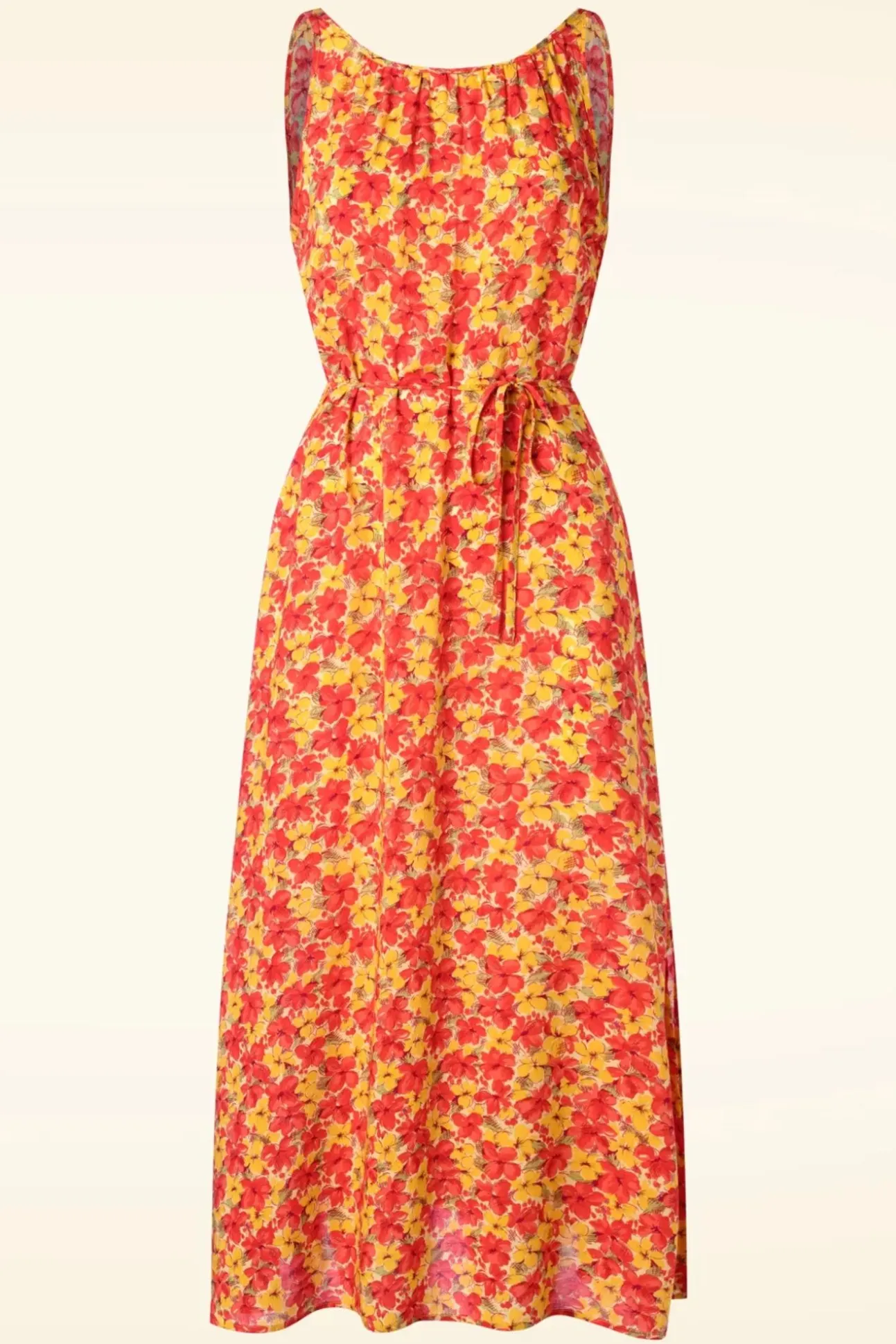 Een Zwoele Zomeravond Is Niet Compleet Zonder Hapjes, Drankjes, Goed Gezelschap En Deze Prachtige Hazel Jurk! Uitgevoerd In Een Soepel Vallende Ecovero Viscose (Stretcht Niet) Met Een Print Van Rode En Gele Bloemen.