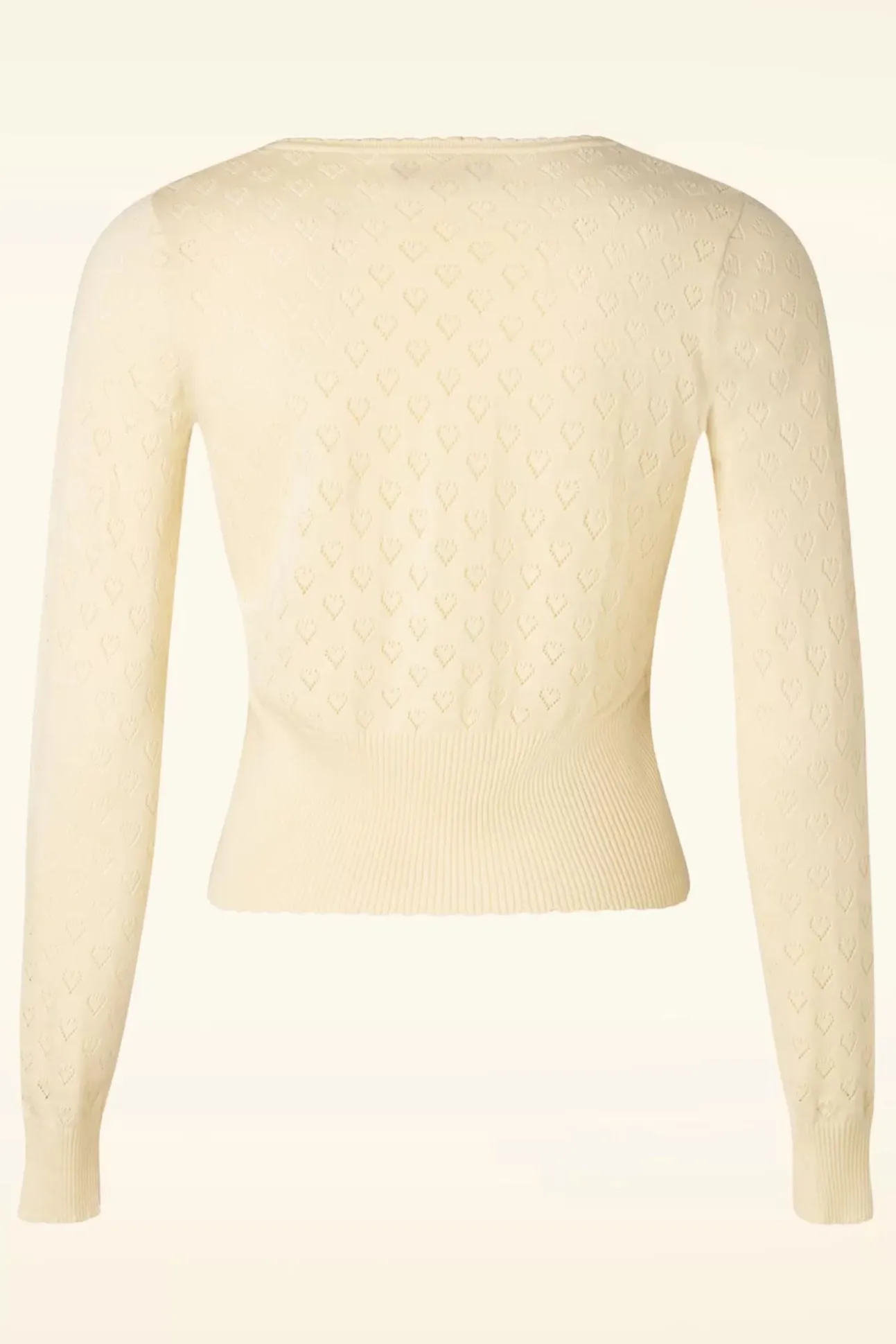 Bij Dit 40S Heart Ajour Vest In Crème Was Het Meteen Liefde Op Het Eerste Gezicht! Wanneer Jij Dit Super Schattige Vestje Met Een Ajourpatroon Van Opengewerkte Hartjes Draagt, Zal Je Het Niet Alleen Heerlijk Warm Hebben, Maar Er Ook Nog Eens Fantastisch Uitzien ;-). Dit Vestje Heeft Een Knoopsluiting Met Een Rij Van Hartvormige Knoopjes, Een Elegante V-Halslijn En Lange Mouwen. Ze Is Uitgevoerd In Een Soepele, Zachte En Stretchy, Crèmekleurige Katoenmix. Comfy And Cute… Hartverwarmend!
