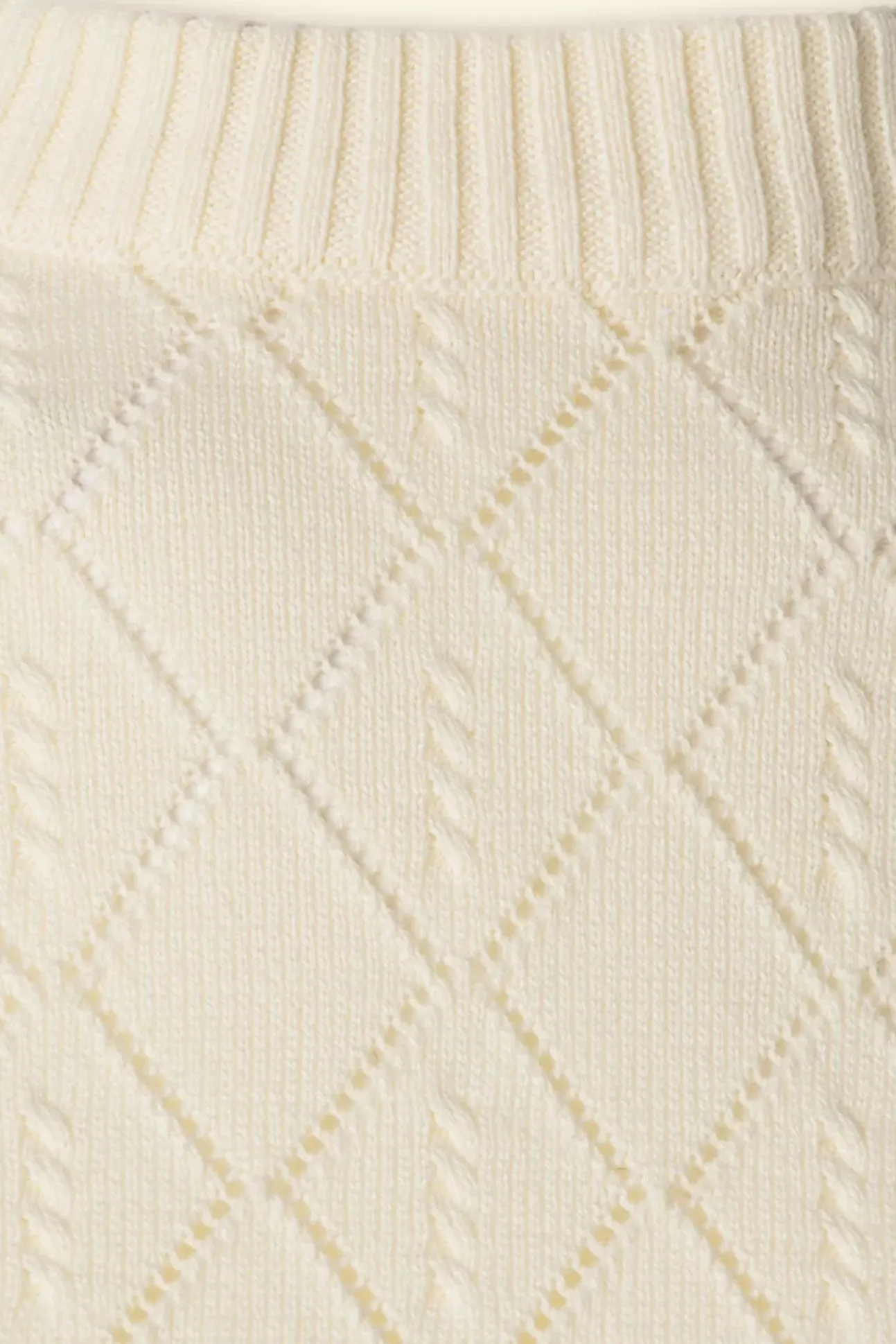 ”Hello Pretty!” Deze Schattige Top Is Uitgevoerd In Een Fijngebreide, Soepele En Stretchy, Organische Katoen In Gebroken Wit, Voorzien Van Een Kabel En Opengewerkt Ruitjes Patroon.