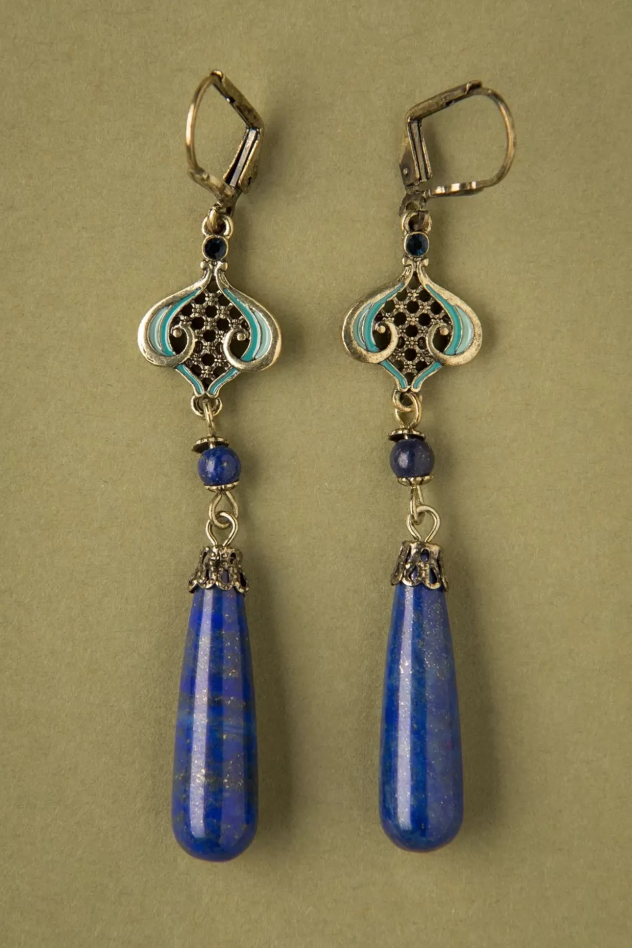 Deze 20S Lapis Drop Earrings In Blue Zijn Niet Zomaar Oorbellen! Ze Zijn Namelijk Voorzien Van Art-Deco Details En Een Druppelvormige Lapis Lazuli Steen Welke Zorgt Voor Bevordering Van Spirituele Kracht, Spirituele Vaardigheden, Astraal Reizen, Verlichting, Wijsheid En Geeft Innerlijke Rust En Vrede. De Steen Maakt Eerlijk, Oprecht En Helpt Innerlijke Waarheid Te Vinden En Deze Te Accepteren. Het Helpt Je Jezelf Te Zijn En Je Eigen Weg Te Bewandelen. Een Absolute Schoonheid Met Betekenis Dus!