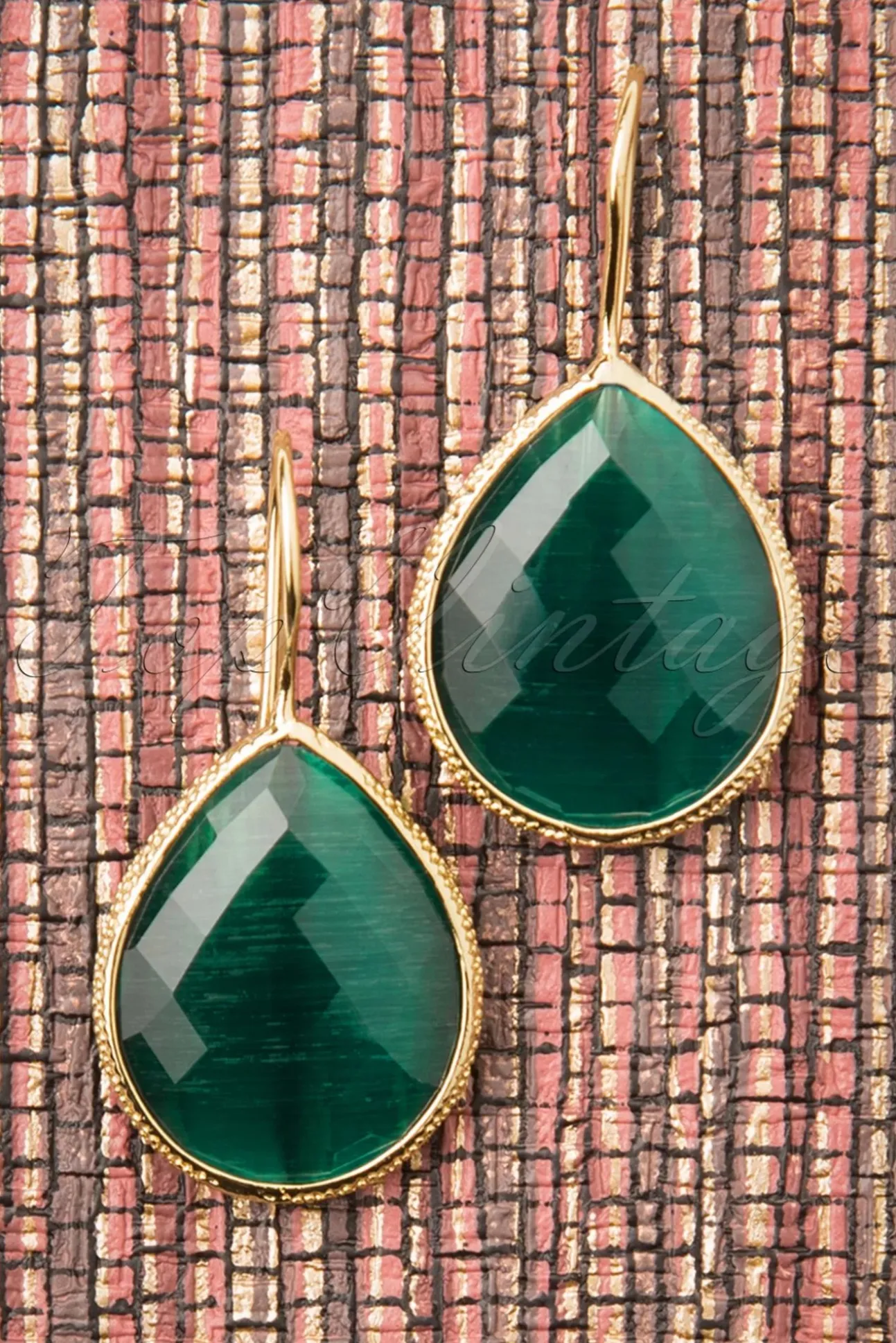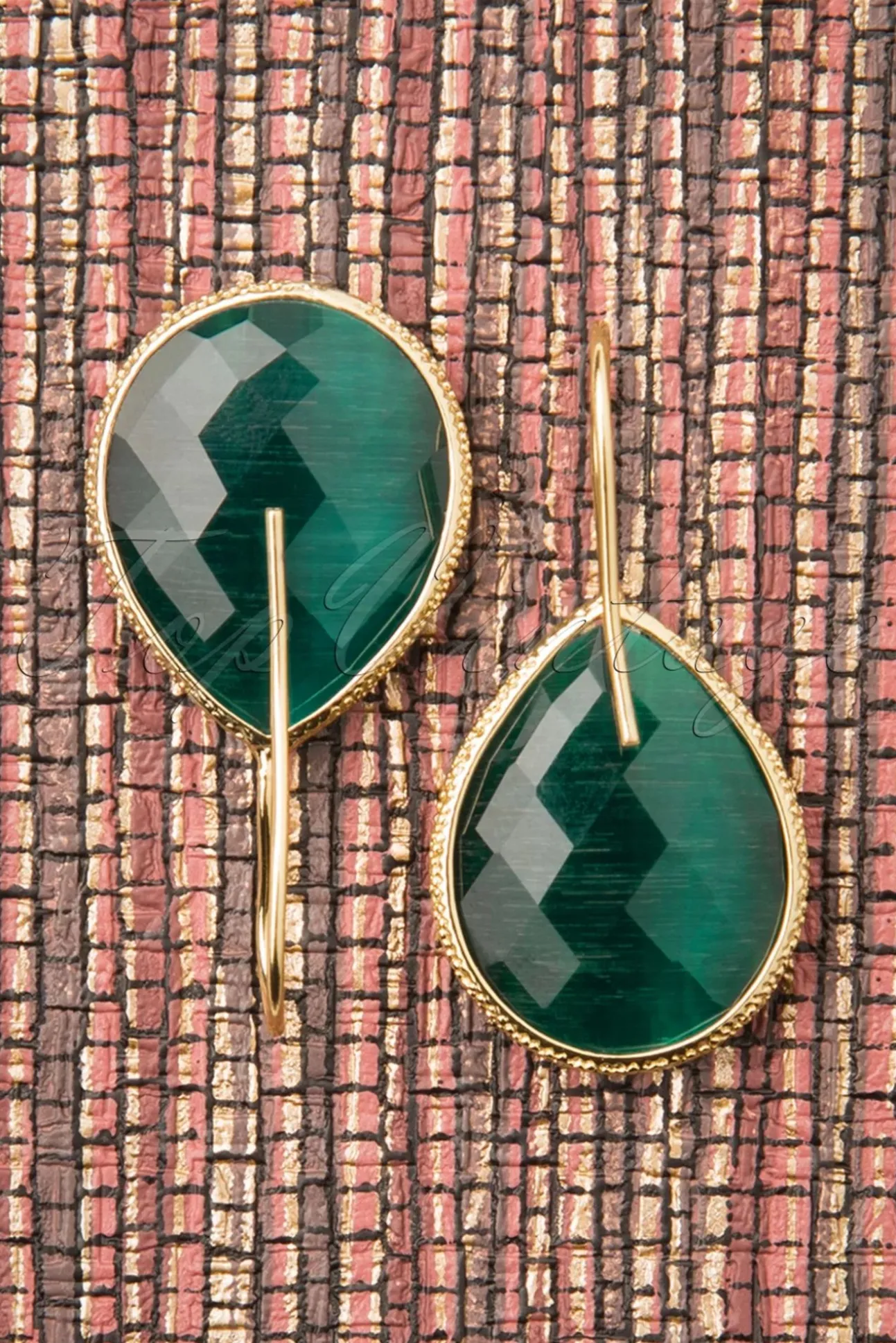 Deze 50S Lavina Drop Earrings In Emerald Zijn Op En Top Classy! Deze Elegante En Verfijnde Oorbellen Zijn Uitgevoerd In Goudkleurig Metaal En Voorzien Van Een Grote Druppelvormige, Smaragdgroene Steen, Wow! De Perfecte Aanvulling Op Al Jouw Vintage Outfits…