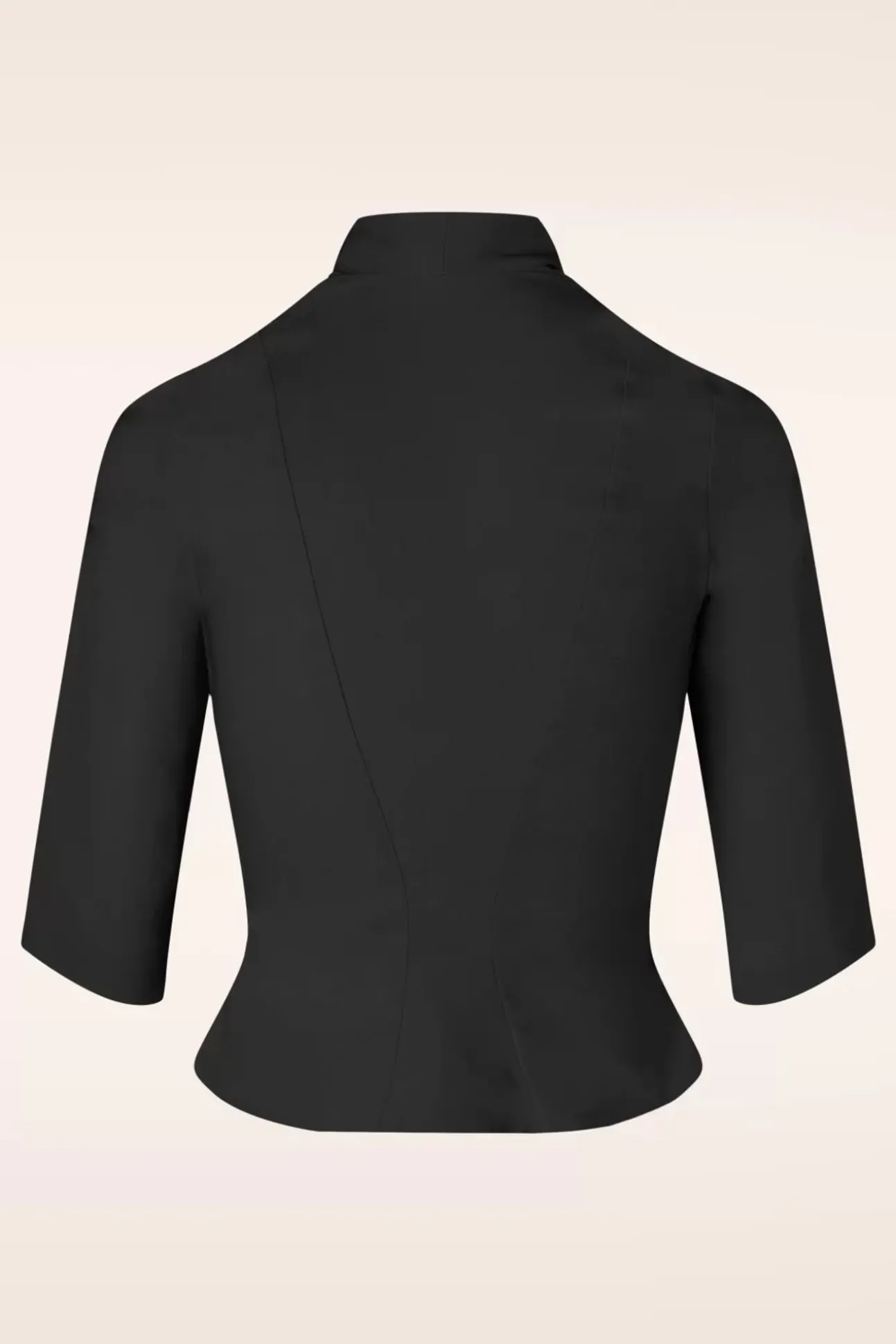 Of Je Deze 50S Liza Lou Blazer Jacket In Black Nu Combineert Met Een Rok Of Pantalon, Jouw Outfit Ziet Er Hoe Dan Ook ‘On Point’ Uit! Dit Blazertje Barst Van De Mooie Details, Zo Heeft Ze; 3/4 Mouwtjes, Plooien Bij De Schouders, Een V-Hals Met Opstaand Kraagje, Zakjes Met Strikdetail En Natuurlijk Het Subtiele Peplum Schootje Voor Een Super Vrouwelijk Silhouet. Uitgevoerd In Een Stevige Maar Stretchy, Zwarte Stof Voor Een Geweldige Pasvorm. Heb Jij Al Een Look Met Dit Blazertje In Gedachte? 😉