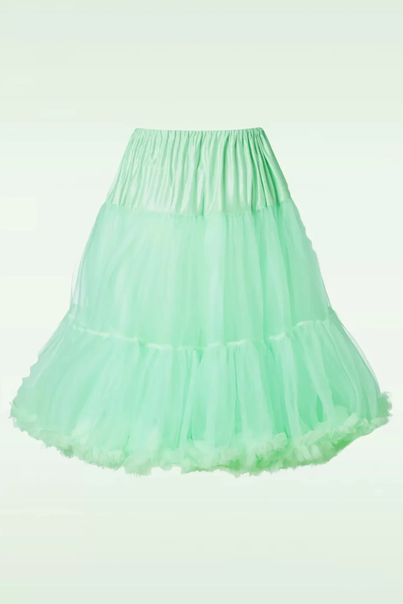 ”Behind Every Great Twirl Is A Trusty Petticoat!” De 2 Lagen Stof Zorgen Voor Extra Volume, Bewegen Gracieus Met Je Mee En Zijn Afgezet Met Speelse Ruches Aan De Onderzijde. De Bovenkant Is Uitgevoerd In Mintgroen Tule En De Onderrok Is Gemaakt Van Een Glanzende Sateen. Afgewerkt Met Een Elastieken Band. Deze Petticoat Geeft Iedere Swing Jurk Net Dat Beetje Extra!