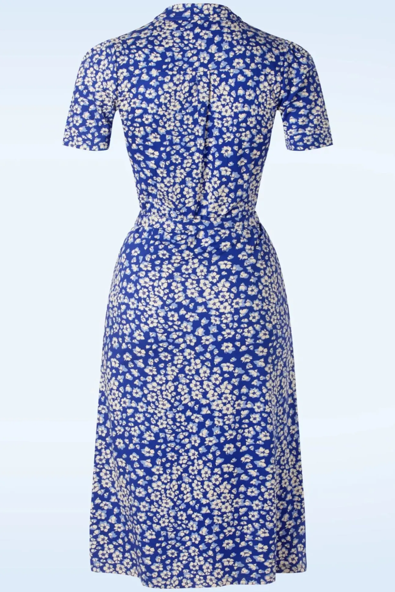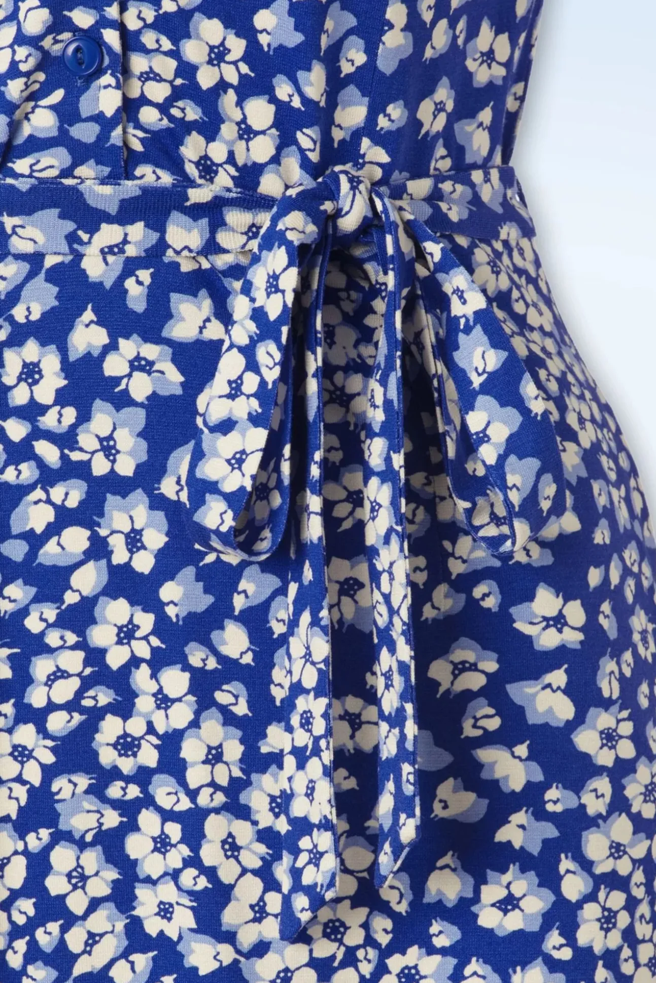”Have Mercy!” Deze Retro Beauty Is Namelijk Perfect Voor Elke Gelegenheid! Uitgevoerd In Een Aangename En Soepel Vallende, Stretchy, Blauwe Ecovero Viscosemix Met Een Print Van Kleine, Witte Bloemetjes.