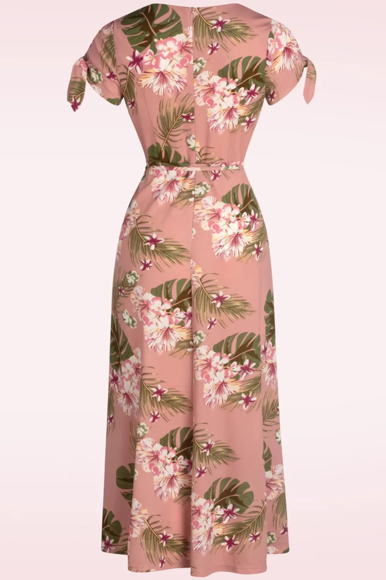 ”Happiness Blooms From Within!” Maar Een Prachtige Jurk Zoals Deze Tropical Flowers Midi Dress In Pink Kan Ook Zorgen Voor Een Smile Op Je Gezicht! De Aansluitende Top Is Voorzien Van Een Elegante V-Hals, Een Reeks Knopen En Korte Mouwen Met Strikbanden. Vanaf De Taille Met Strikbandjes Loopt Ze Uit In Een Flowy Midi Rok. Uitgevoerd In Een Aangenaam En Soepel Vallend, Stretchy Perzikroze Stofje Bezaaid Met Een Kleurrijke Print Van Tropische Bloemen En Bladeren. ”Bloom Baby, Bloom!”