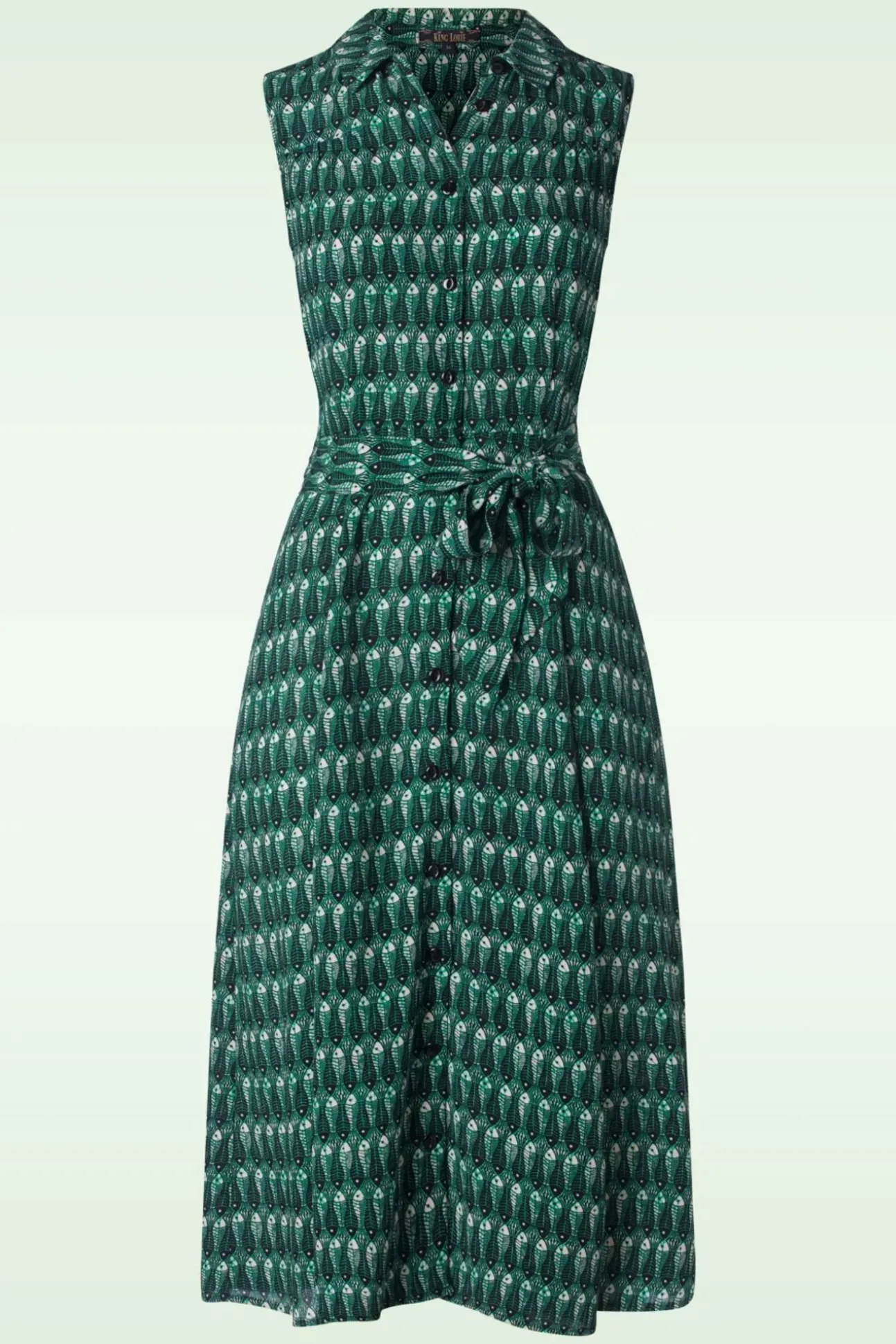 Genieten Van Die (Eerste) Zonnestralen Doe Je In Deze Geweldige Flowy Doorknoop Jurk. Uitgevoerd In Luchtig En Soepel Ecovero Viscose (Stretcht Niet) Met Een Print Van Visjes In Zwart, Zeegroen En Wit.