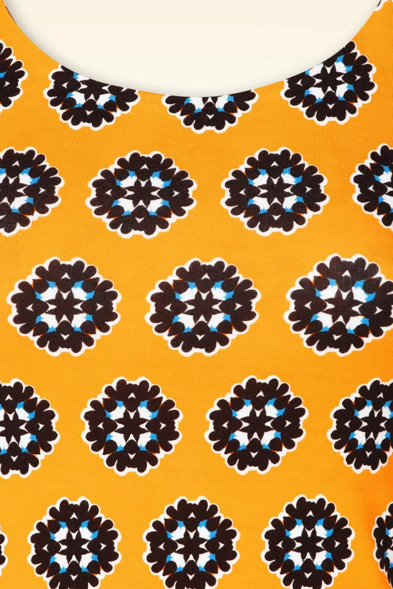 “Life Is Short… Buy The Top!” Deze Nylah Top Is Uitgevoerd In Een Zachte En Stretchy, Gele Bamboe Viscosemix Voorzien Van Een Grafische Printje In De Kleuren: Bruin, Blauw En Wit.