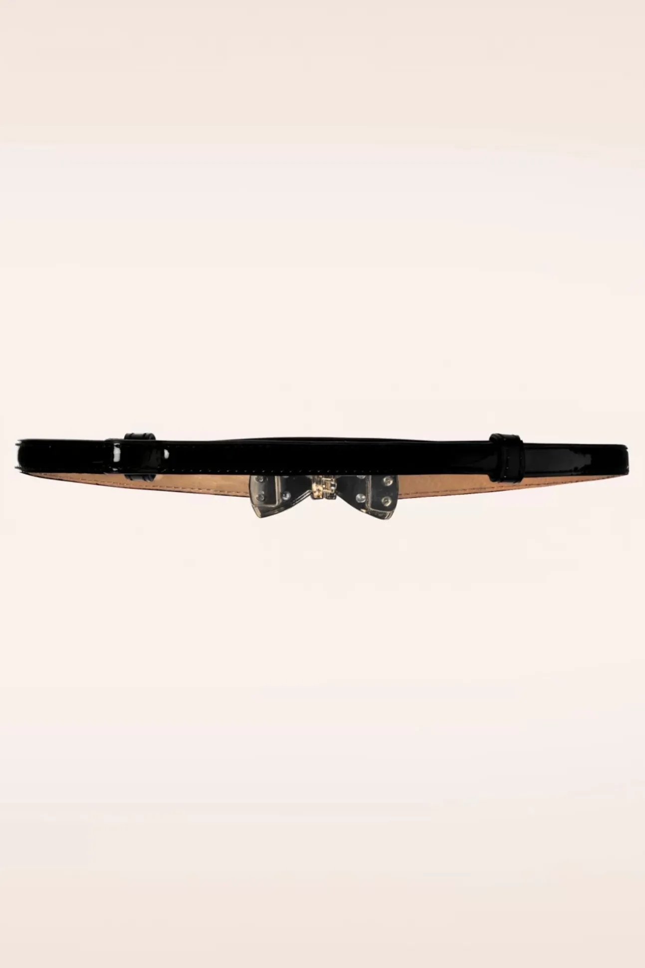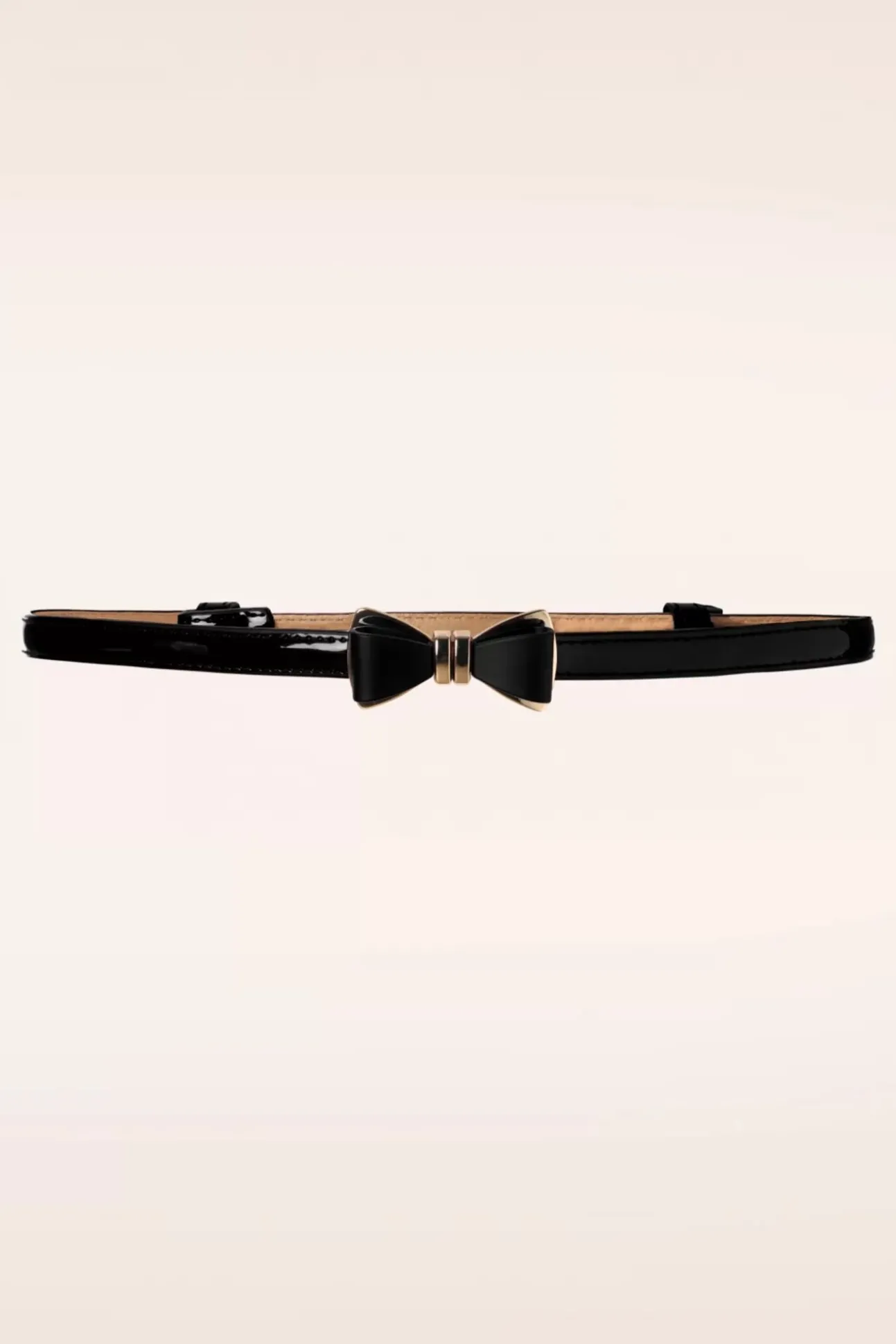 Deze 50S Ocean Avenue Bow Belt Is Een Classy Riem In Vintage Look En Een Aanvulling Op Elke Outfit. Deze Prachtige Smalle Verstelbare Ceintuur Is Uitgevoerd In Zwart ‘Faux’ Lakleder Met Een Elegant Goudkleurig Strikje, Très Chique! Subtiel Riempje Met Een Hoge Wow-Factor En Een Echte Must-Have Voor Alle Vintage Ladies!