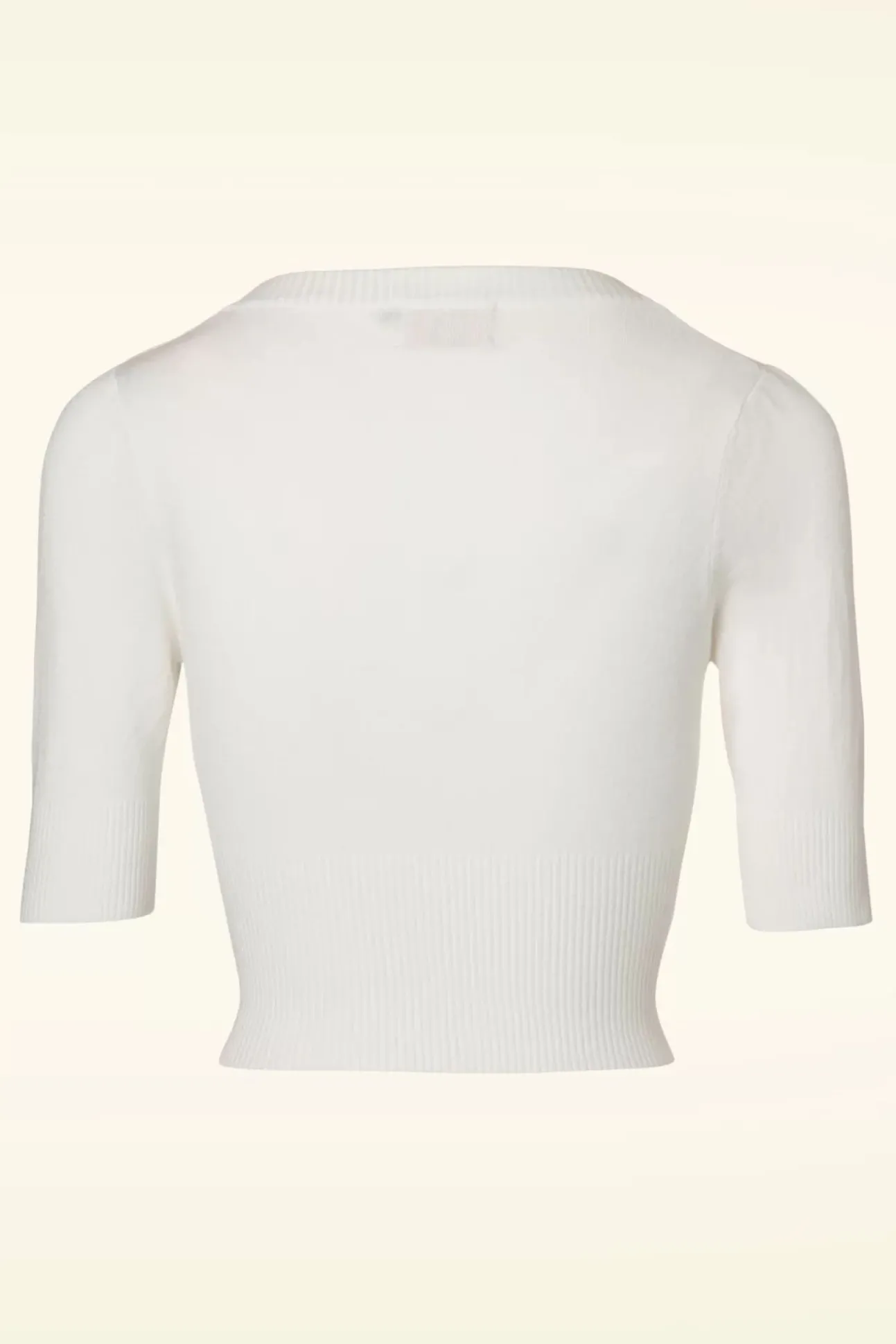 De 50S Overload Cardigan Is Een Echte Klassieker! Classy In Al Haar Eenvoud En Daardoor De Perfecte Match Met Al Jouw Vintage Kledingstukken! Deze Korte Cardi Heeft Een Elegante V-Halslijn, 1/2 Mouwen En Grote Glimmende Knopen. Uitgevoerd In Een Fijngebreide, Ivoorwitte Viscosemix Met Een Heerlijke Stretch Voor Een Mooie Aansluitende Pasvorm. De Combinatiemogelijkheden Zijn Eindeloos!