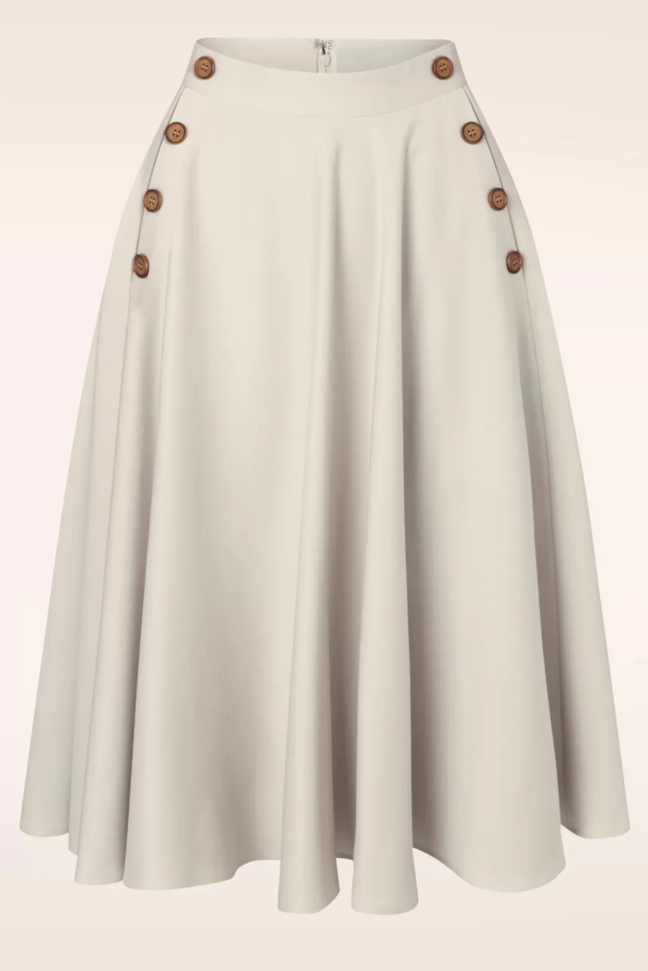 Klassiek, Tijdloos En Ontzettend Vrouwelijk! Deze Polly May Swing Skirt In Off White Kun Je Eindeloos Combineren! Je Draagt Haar Hoog In De Taille Vanwaar Zij Uitloopt In Een Elegante, Zwierige Swing Rok Met Zijwaartse ‘Faux’ Knoopdetails En Handige Steekzakjes. Uitgevoerd In Een Soepel Vallend, Gebroken Wit Stofje (Stretcht Amper) Die Heerlijk Draagt. Deze Swing Beauty Wordt Gegarandeerd Jouw Nieuwe Zomer Favoriet!