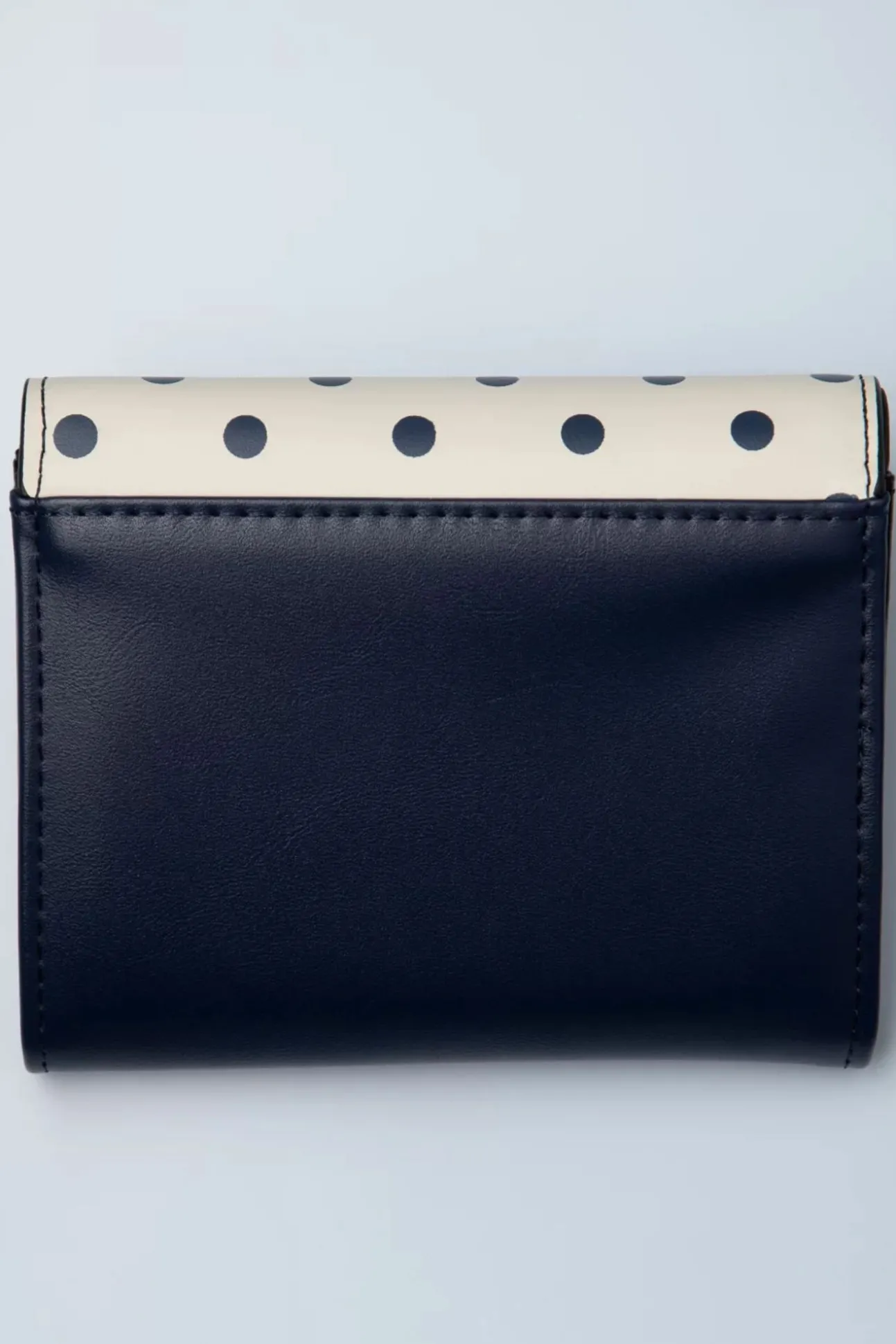Is Het Geen Dotje?! Deze Schattige, Kleine Portemonnee Met Polkadots Is Uitgevoerd In Wit En Navyblauw Imitatieleder Met Een Rood Strik Detail.