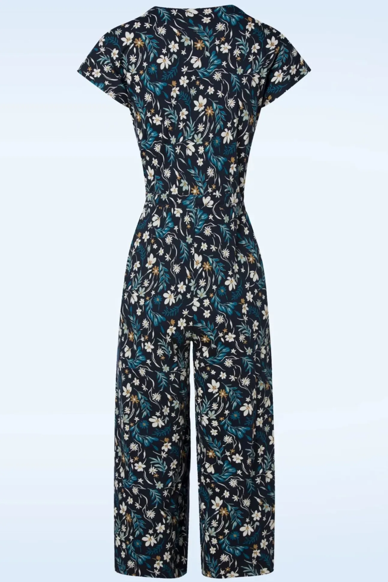 Nieuwe Collectie ~ Kijk De Zon Achter De Wolken Vandaan In Deze Prachtige Jumpsuit! Ze Is Uitgevoerd In Een Zachte En Soepele, Stretchy, Donkerblauwe Organische Katoen Met Een Kleurrijke Bloemenprint, Die Zo Comfortabel Draagt Dat Je Haar Nooit Meer Uit Wilt Trekken.
