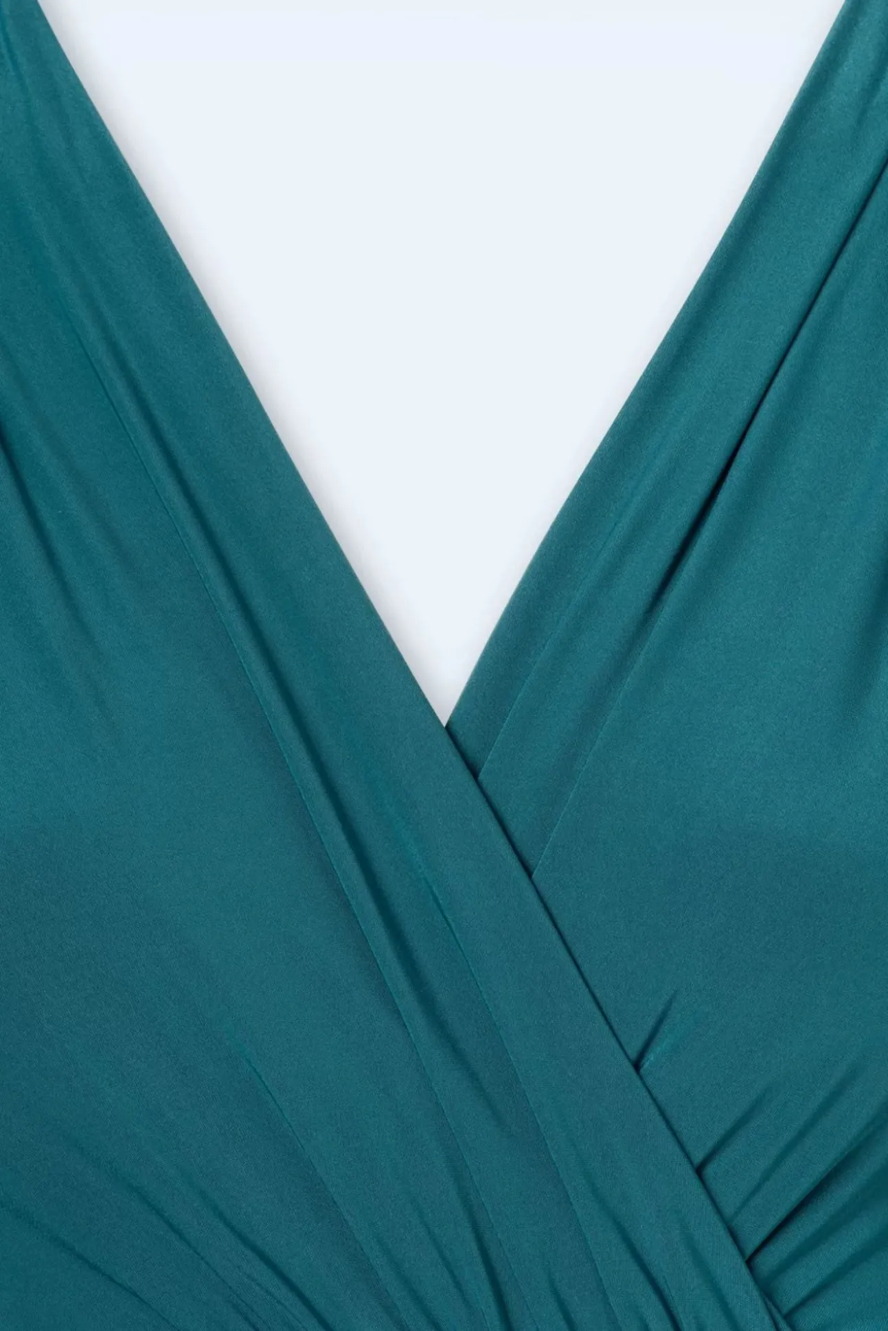 Dezeelegante 50S Sadie Swing Dress In Teal Is Eenechte Vintage Beauty Die Perfect Is Voor Elke Gelegenheid! De Aansluitendetop Met Korte Vlindermouwtjes Heeft Een Prachtige V-Halslijn, Mooie Overslag, Een Flatterende Geplooide Tailleband En Een Zwierige Semi-Swing Rok. Uitgevoerd In Een Glad En Soepel, Stretchy, Tealblauw Slinky Stofje Datheerlijk Draagt En Niet Kreukt. Geniet Van De Complimentjes Die Je Krijgt, Zodra Je Sadie Draagt!