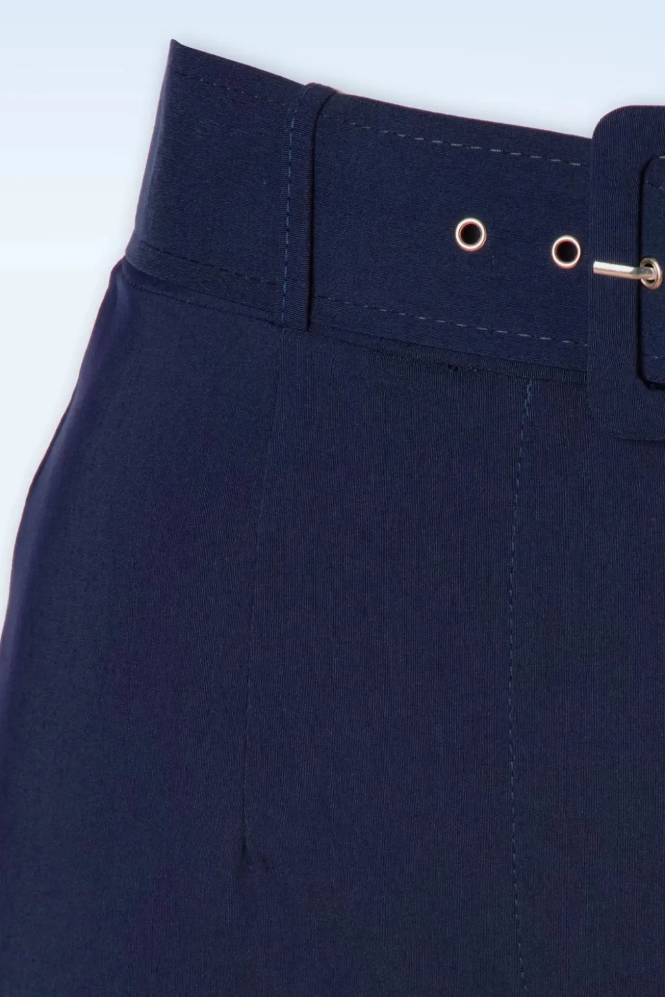 Deze Sasha Pantalon Is Een Ware Must-Have! Dit High Waist Model Is Voorzien Van Lange Wijde Broekspijpen En Is Uitgevoerd In Een Heerlijke Stretchy, Marineblauwe Bengaline Stof Die Verrassend Comfortabel Draagt.