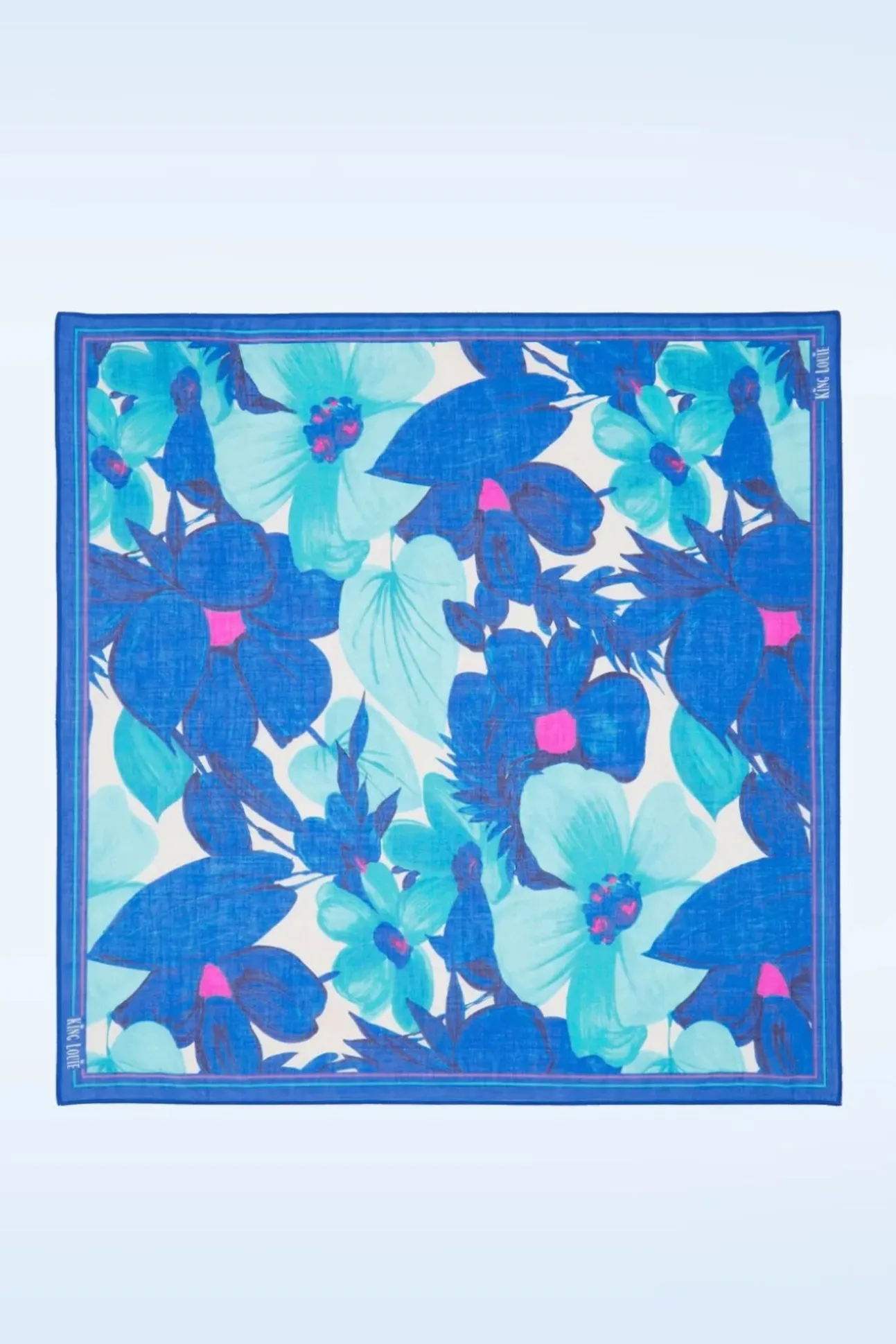 In Je Haar, Om Je Hals Of Aan Je Tas! Dit Sjaaltje In Prachtige Blauwtinten Met Een Print Van Bloemen In Uitgevoerd In 100% Luchtig Katoen!