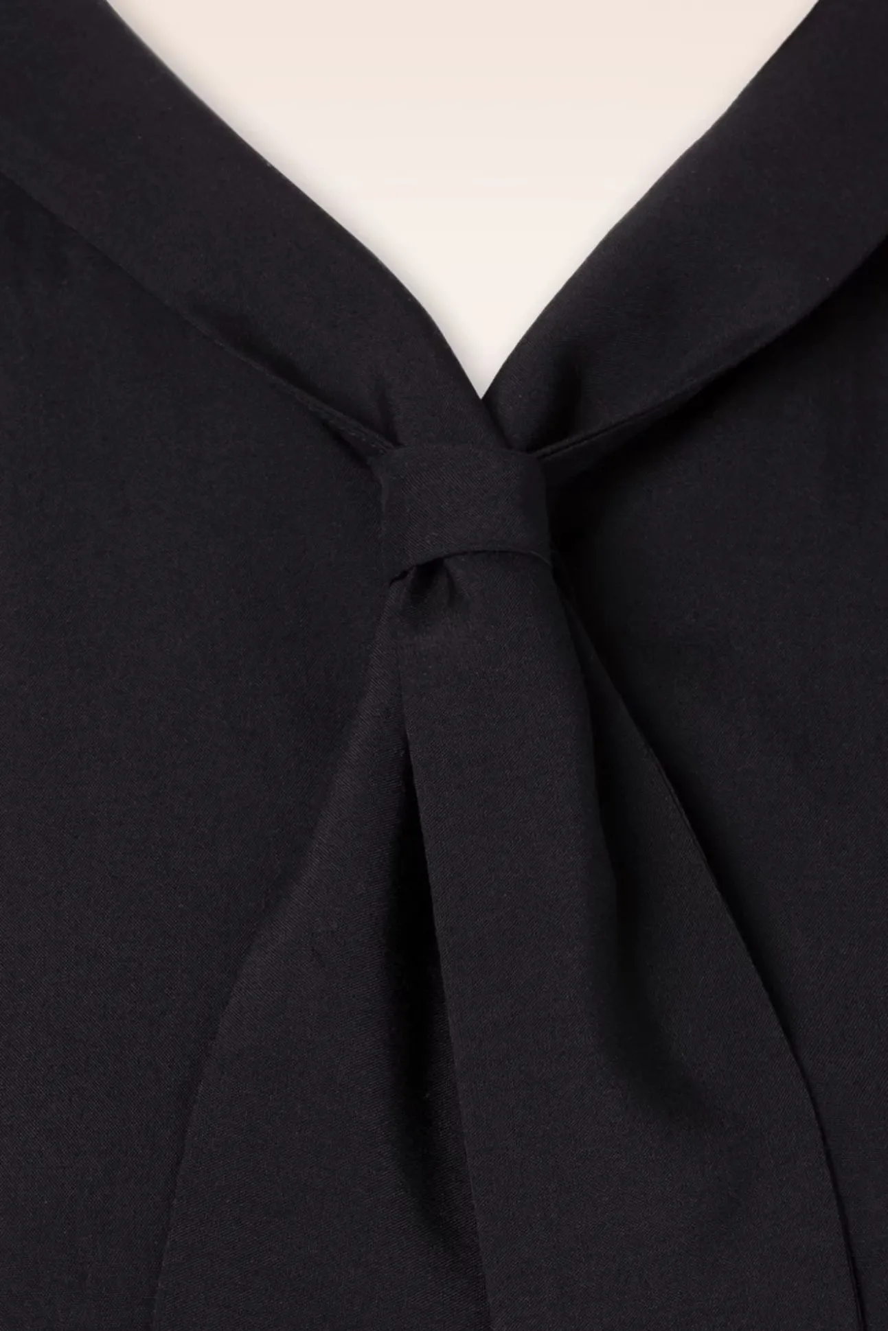 Deze Summer Ahoy Blouse In Black Is Een Echte Sailor Cutie! Ze Heeft Een V-Halslijn Met Vaste Strikbanden, Een Reeks Glanzende Knopen En Korte Mouwtjes. Uitgevoerd In Een Heerlijke, Soepele En Luchtige Zwarte Viscose (Stretcht Niet) Die Heerlijk Draagt. Gooi Je Anker Maar Uit En Hengel Deze Cutie Maar In Je Shoppingbag!
