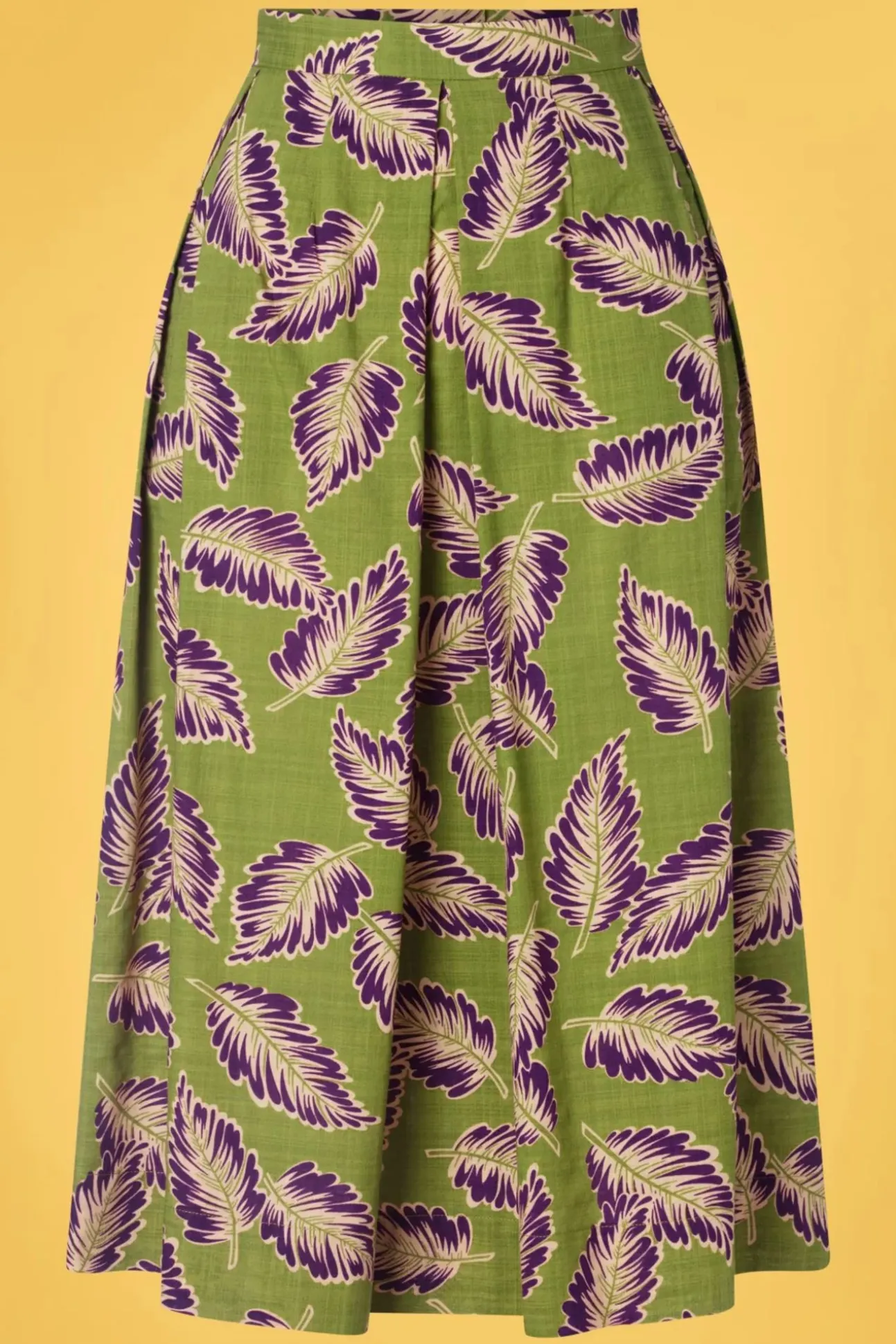 Ik Ga Op Vakantie En Neem Mee… Deze Suzette Dominica Pleat Skirt In Woodbine Green Natuurlijk! Ze Wordt In De Taillegedragen En Loopt Uit In Een Flatterende, Semi-Swing Rok Met Stolpplooien. Uitgevoerd In Een Soepel Vallende, Luchtige Katoen-/Viscosemix In Peergroen (Stretcht Niet!) Met Een Fantastische Print Van Tropische Bladeren In Paars En Crème. Een Leuk Sandaaltje Eronder, Een Matching Top En Je Bent Helemaal Klaar Voor Warmere Dagen!