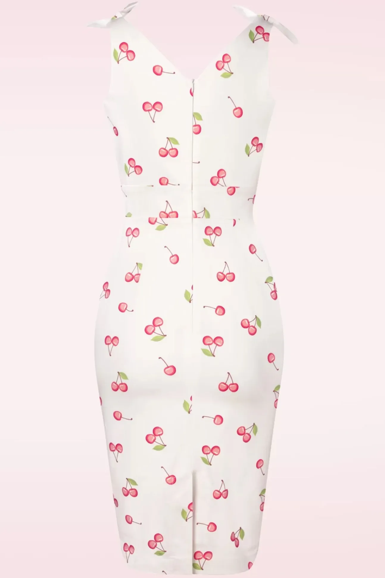 ”Destination? Paradise!” En Of Dat Nu De Franse Riviera Is Of Gewoon Aan De Kust In Eigen Land… Flaneren Doe Je In The Harper Cherry Print Pencil Dress In White Uit De Nieuwe Glamour Bunny Collectie! Een Classy, Body Hugging Pencil Dress Die De ‘sass’ In ‘sassy’ Stopt Met Haar V-Hals, Vaste Overslag En Flirty Strikdetails Op De Schouders. Uitgevoerd In Een Stevige Maar Soepele, Katoenmix Met Lieve Rode Kersjes En Een Hele Lichte Stretch Waardoor Je Rondingen Subliem Tot Hun Recht Komen En Je Zelfvertrouwen Naar Een Ongekende Hoogte Stijgt. ”Jet-Set Your Way Through Summer, Hunnie!”