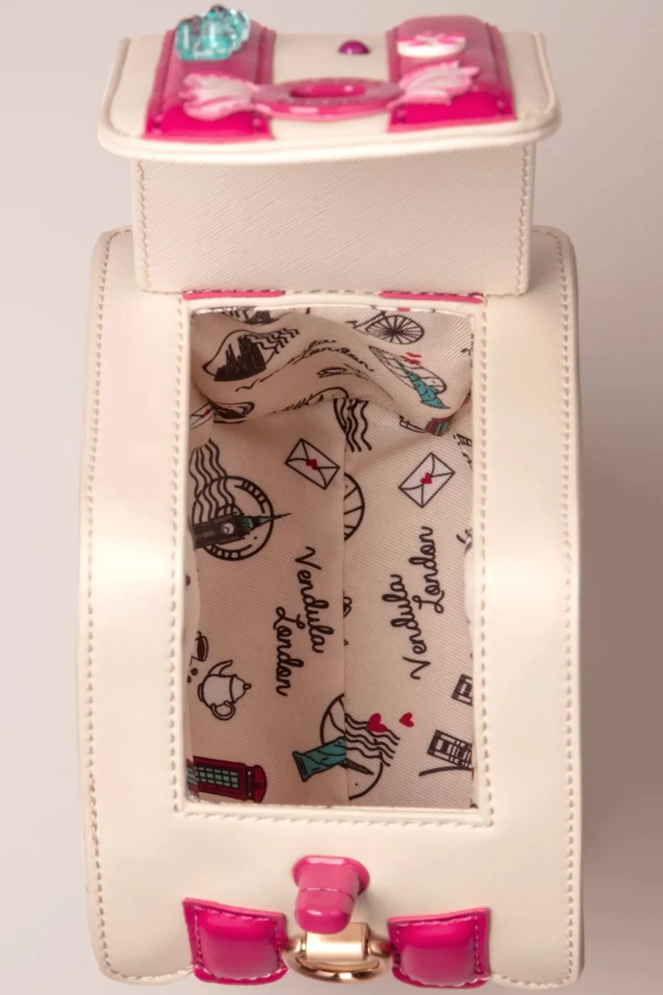 Nieuwe Collectie ~ ”Hush, Hush… Just Enjoy The Sugar Rush!” Het Is Bijna Onmogelijk Te Omschrijven Hoe Mooi Deze Handgemaakte Tas In De Vorm Van Een Snoepwinkel Is! Uitgevoerd In Roze En Gebroken Wit Vegan Leder Met Allerlei ‘Zoete’ Details. ”Eye Candy For Sure!”
