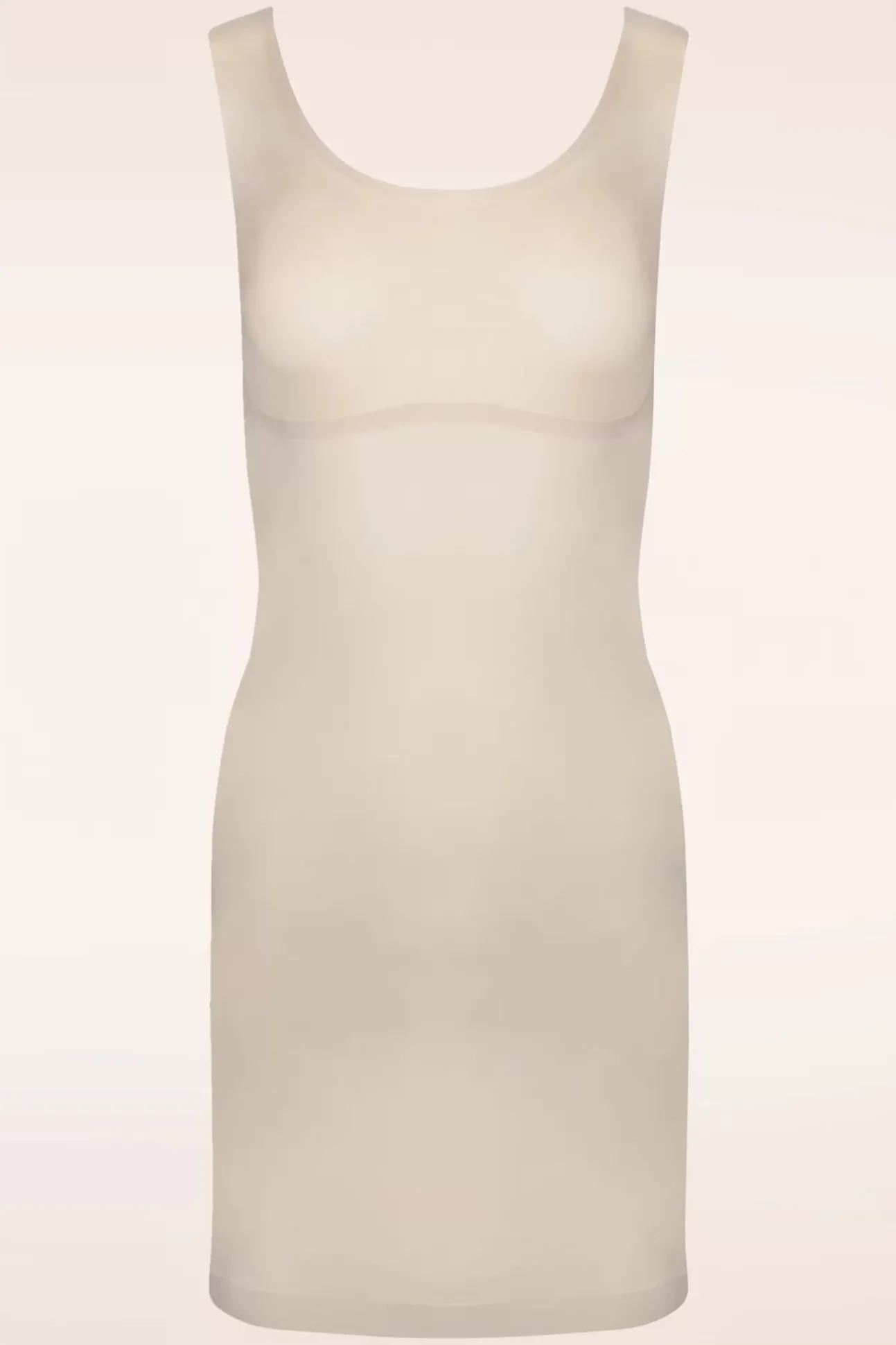 Creëer Je Droom Silhouet En Zorg Er Tegelijkertijd Voor Dat Ieder (Strak) Jurkje Perfect Zit! Dit Comfortabele, Body Hugging Onderjurkje Voelt Aan Als Een Tweede Huid En Shaped Je Hele Bovenlichaam, Je Heupen En Je Bovenbenen. Gemaakt Van Een Glad En Stevig Crèmekleurig Gerecycled Stofje Met Een Naadloze Afwerking.