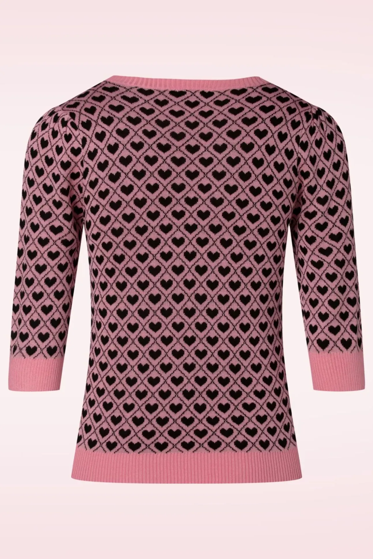 “Love Is In The Air” Met Deze 50S Heart Pattern Sweater In Pink! “Do You Want To Know What Love Looks Like? Just Take A Look At This Cutie” 😉 Ze Heeft Een Ronde Halslijn En Schattige 1/2 Pofmouwen. Uitgevoerd In Een Zachte, Fijngebreide, Stretchy, Roze Viscose Met Een Zwart Geruit Hartjespatroon. En, Al Verliefd?