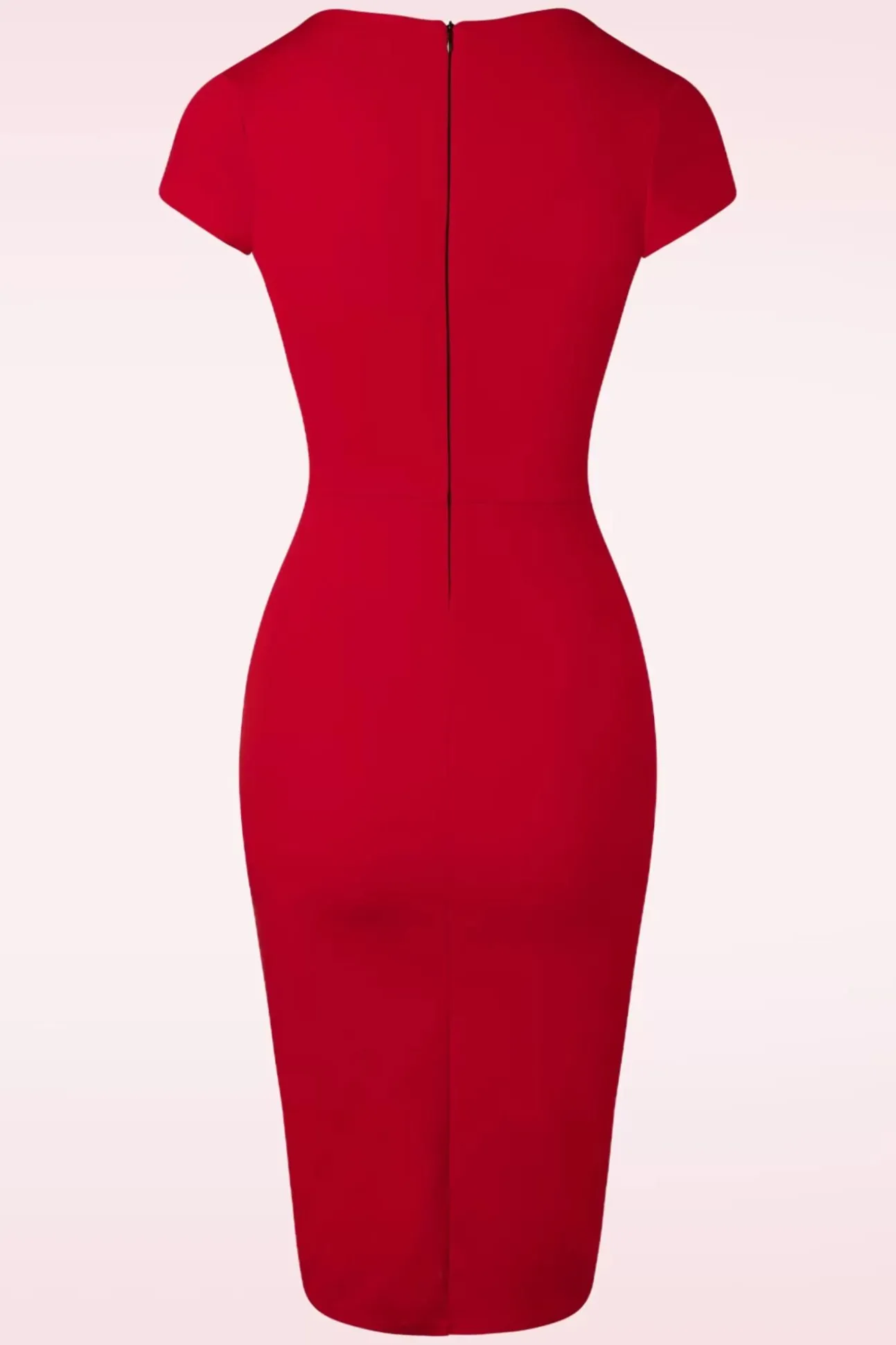 Altijd Al De Perfecte Pencil Dress Willen Bezitten? Dan Is Deze 50S Vivien Pencil Jurk In Diep Rood De Ware Voor Jou! De Mooie Overslag Top Is Voorzien Van Platte Plooien, Korte Mouwtjes En En Een Geplooide Tailleband Die Super Flatterend Werkt. Uitgevoerd In Een Prachtige Soepele En Stretchy, Dieprode Stof Die Je Rondingen Perfect Laat Uitkomen Zonder Af Te Tekenen. Tijdloos, Klassiek En Altijd De Juiste Keuze…. Fashion Flaters Behoren Tot Het Verleden Met Vivien In Je Kast!